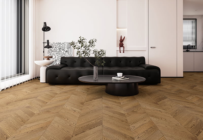 Traiga elegancia atemporal a sus interiores con el piso de madera diseñada por el chevron cepillado de Europa del Este. Con un patrón clásico de chevron, este piso agrega un diseño geométrico sofisticado que se adapta a los espacios contemporáneos y tradicionales. La superficie cepillada mejora la textura natural de la madera, dándole un aspecto táctil y refinado que agrega profundidad y carácter a sus pisos. Hecho con una calificación ABC, este piso ofrece una durabilidad excepcional, por lo que es una excelente opción para áreas de alto tráfico en espacios residenciales y comerciales. El recubrimiento de laca UV no solo protege la madera, sino que también resalta su belleza natural, preservando la apariencia de la madera al tiempo que garantiza un rendimiento duradero. El nivel de brillo de 7 ± 2 ° proporciona un brillo sutil y refinado, que ofrece un equilibrio entre los acabados mate y brillantes para un toque bueno y elegante. Su diseño versátil, combinado con el acabado de alta calidad, lo convierte en la opción de piso ideal para crear un entorno acogedor y elegante que resistirá la prueba del tiempo. .