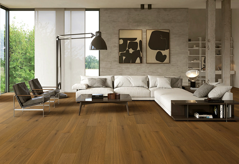 LEER MÁSEl piso de madera de ingeniería de roble blanco Lorette combina materiales premium con artesanía avanzada para ofrecer una solución de piso que sea visualmente atractiva y duradera. Las características únicas del producto lo hacen particularmente adecuado para varias aplicaciones residenciales y comerciales, particularmente en el mercado de Europa del Este, donde sus tonos cálidos y acogedores y la construcción robusta se alinean con las preferencias estéticas locales. Los tonos cálidos de la chapa de roble blanco ofrecen un aspecto más acogedor y natural, bueno para crear espacios acogedores e invitados. El calor de la madera mejora la atmósfera de cualquier habitación, ya sea una sala de estar, un dormitorio o un espacio comercial. La textura cepillada profunda mejora el grano natural de la madera, dándole una apariencia rústica pero sofisticada que es altamente versátil y atemporal. Este acabado agrega carácter y profundidad al piso, haciendo que cada tabla sea única.